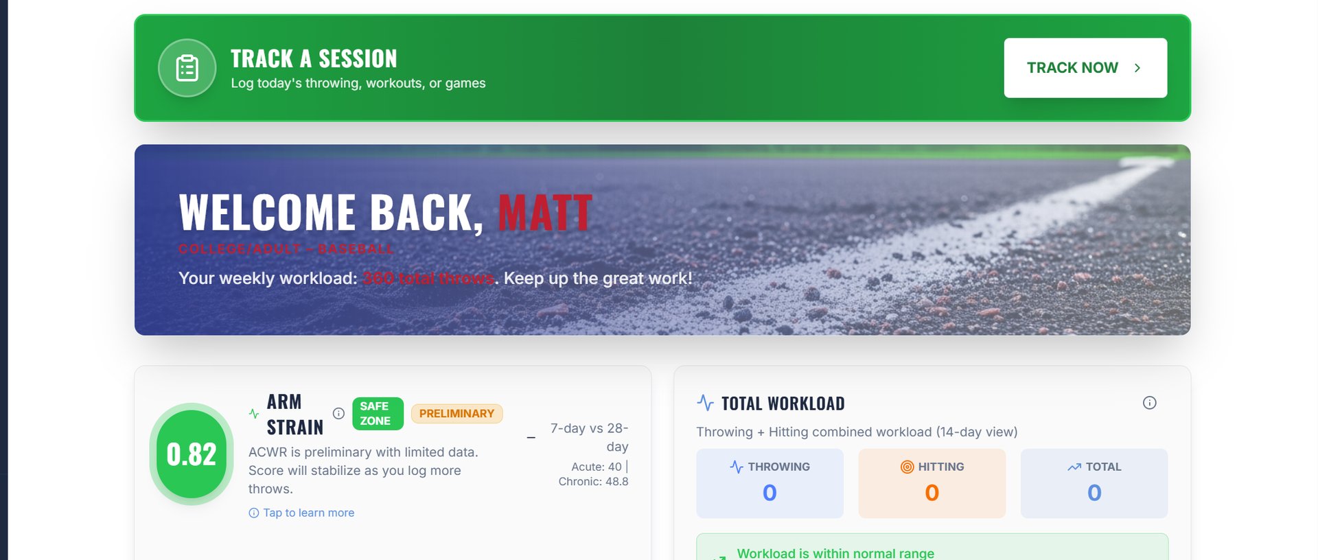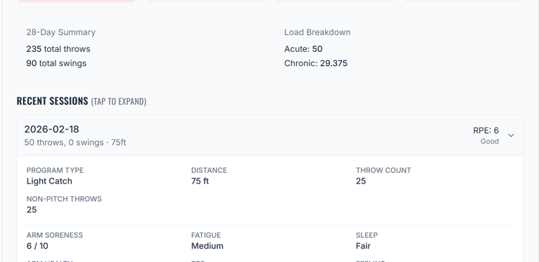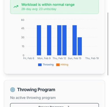 Get custom throwing plans based on workload and recovery data