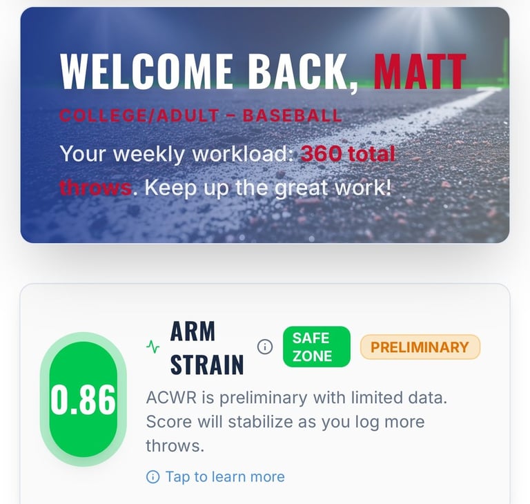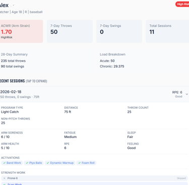 Diamond Arm Lab gives parents and coaches the same workload data MLB teams use — before the damage is done. Built by an MLB Assistant Athletic Trainer with 19 years in professional baseball.