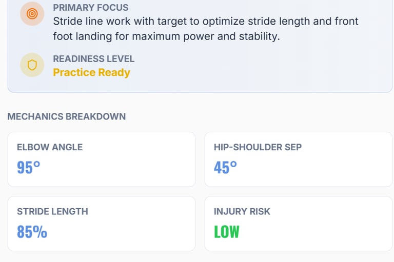 Upload throwing videos for AI-powered biomechanical feedback tailored to each player’s needs.